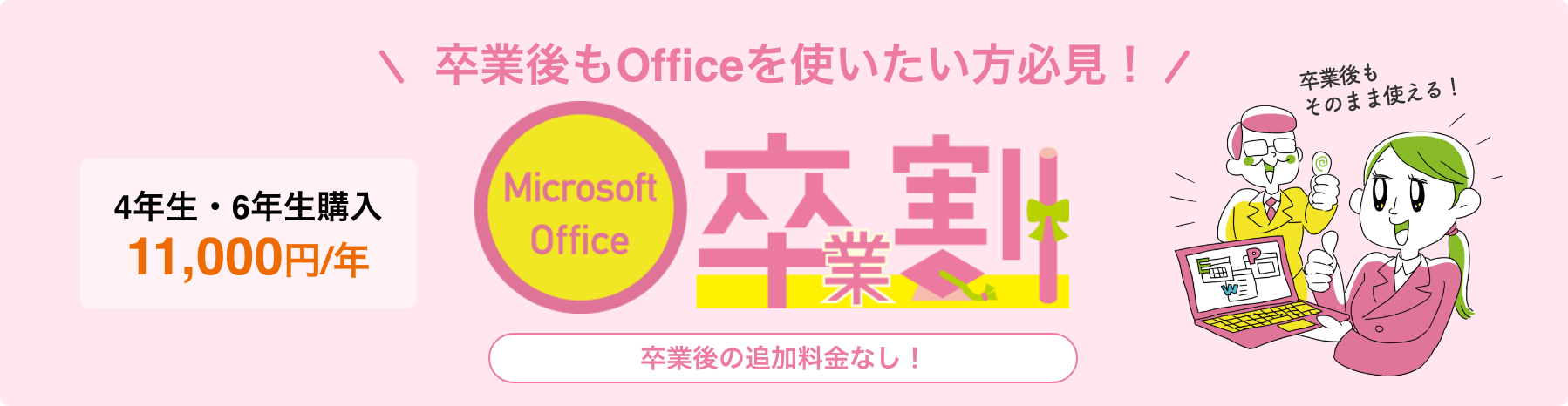 卒業後、社会に出てもそのまま使える!追加料金はかかりません!